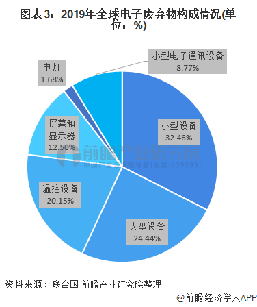 小型设备电子废弃物占比最大,温控设备增速较快,电子废弃物回收利用率较低