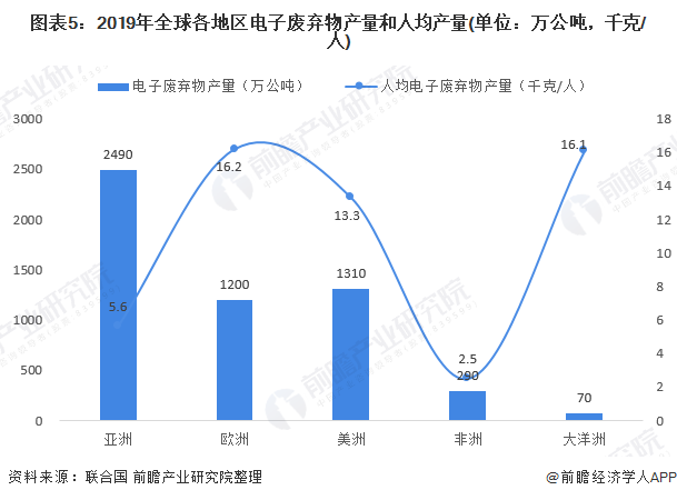 亚洲电子废弃物数量第一,欧洲人均电子废弃物产生量第一